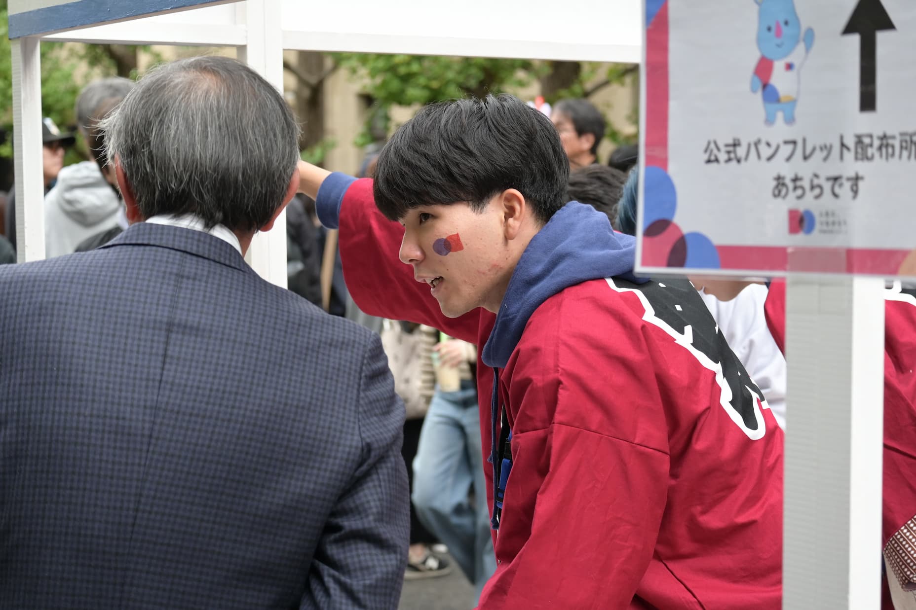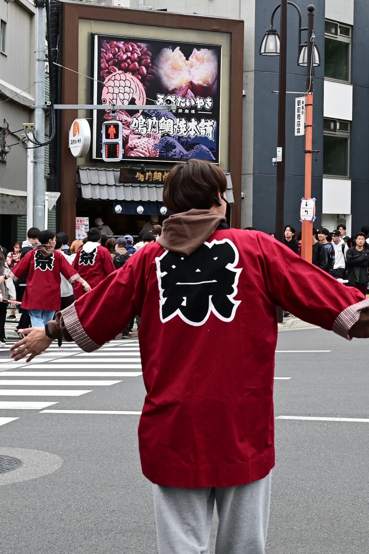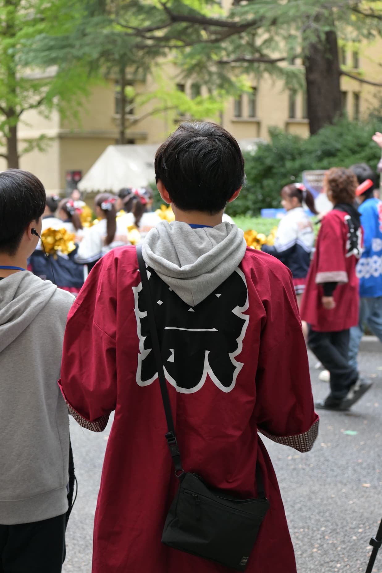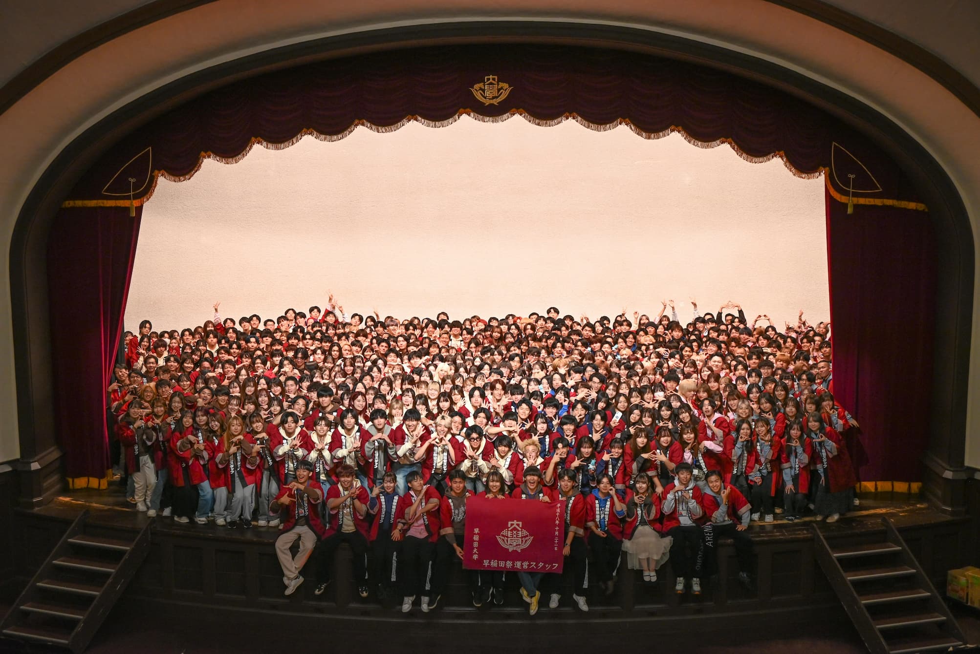 運営スタッフを象徴するはっぴ。早稲田を象徴するえんじ色を基調としており、 祭当日のみならず普段の活動でも着る機会があります。このはっぴを着て、私たちと一緒に活動しませんか?